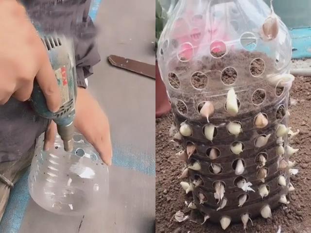 步驟:1、把塑料瓶打眼,把蒜掰成一瓣一瓣的,蒜的個頭大小都可以的。