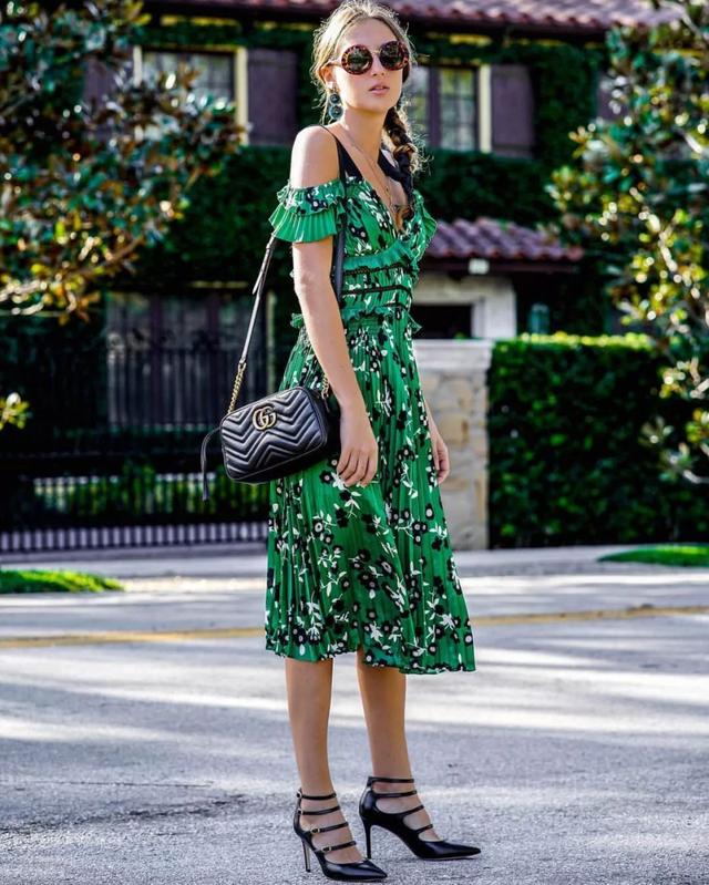 一般來說清爽的印花和復古色,比如綠色、黃色、紅色,更容易穿出風情。▼