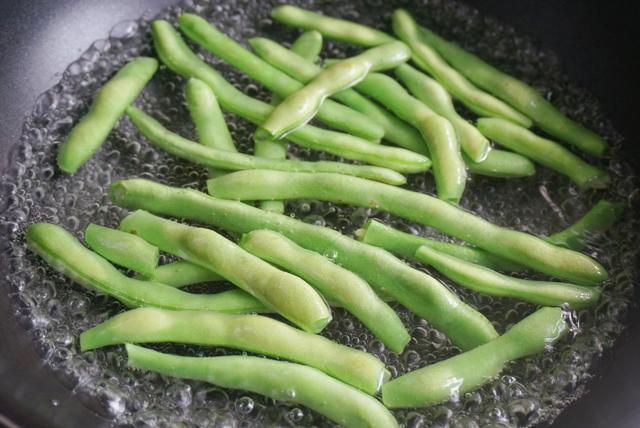 1.豆角擇好洗淨,放鍋中開水焯兩分鐘左右,變得軟了就可以了。