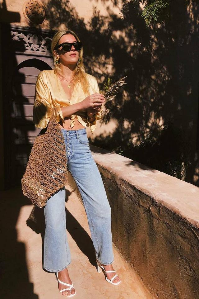 絲質襯衫搭配牛仔褲,是最熱門的搭配之一了。溫柔的絲質與硬朗的牛仔達成一種完美的結合,是夏天穿搭裡百看不厭的經典組合。