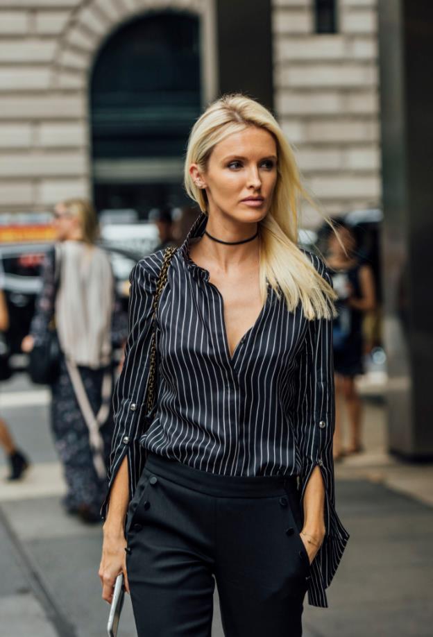 深V的絲質襯衣當然也很值得入手,像博主AnneLaure Mais的這種交叉款就特別容易拉長頸部。