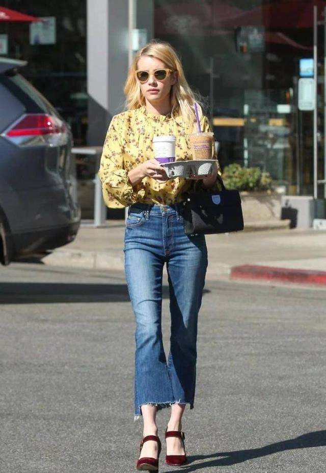 還有貝嫂亮眼的花襯衫搭配九分牛仔褲,也是別具回頭率,自帶好氣色沒誰了!