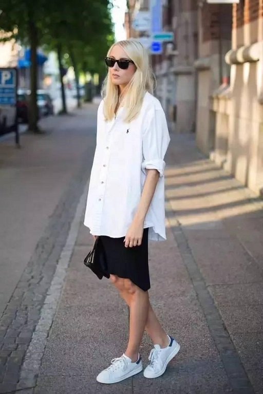 不得不說,白球鞋的搭配潛力的確無鞋能敵。無論是休閒褲裝還是浪漫裙裝,腳踩小白鞋都不會違和,甚至可能會產生獨特的時尚反應: