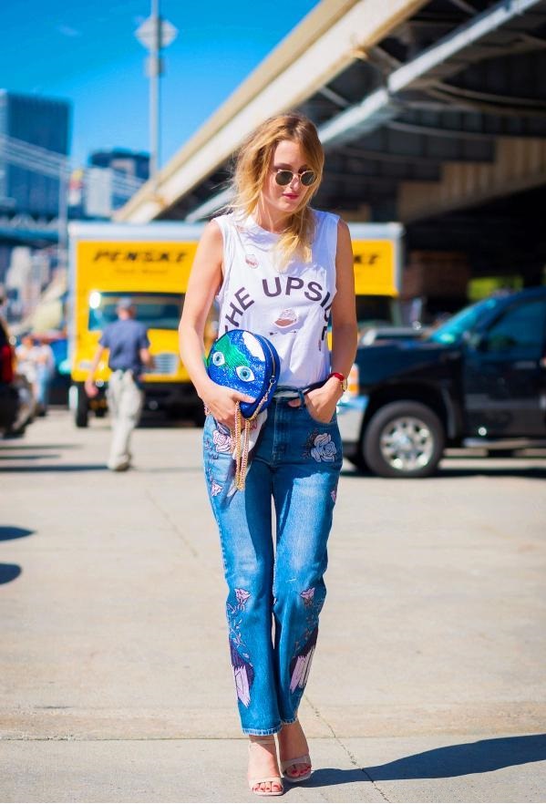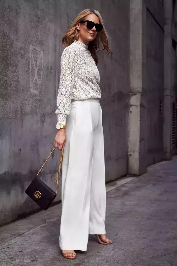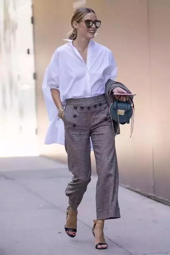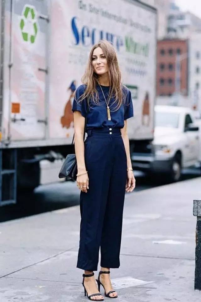 街拍中隨處可見相似的穿法。夏季的闊腿褲就有一字帶涼鞋守護。