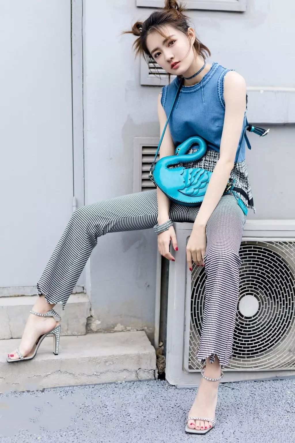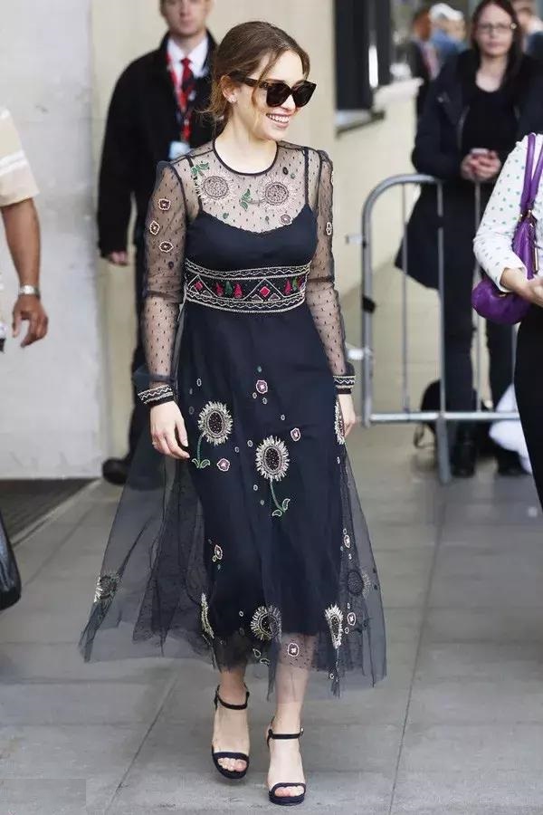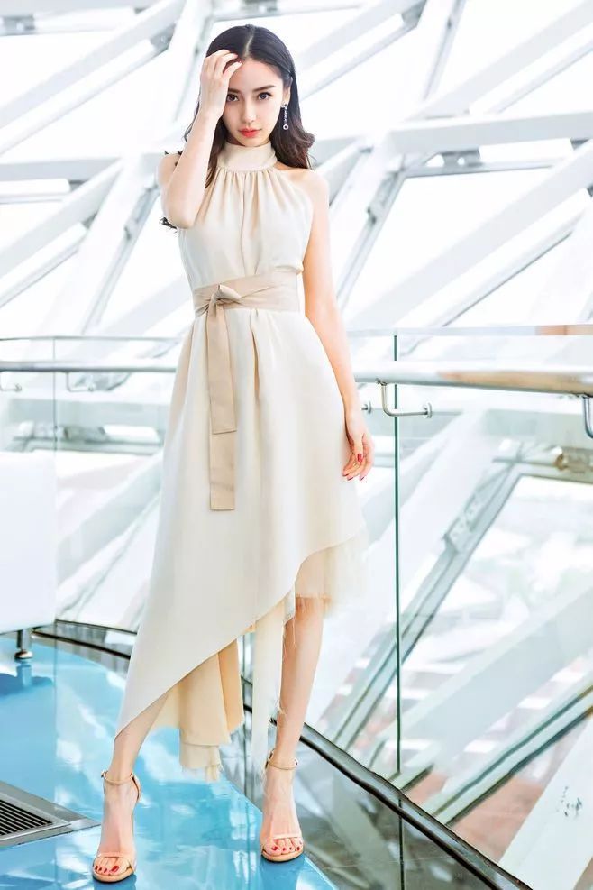 或者像江疏影一樣選擇一雙水晶裝飾的一字帶高跟鞋,在素色裝扮裡很容易成為亮點。