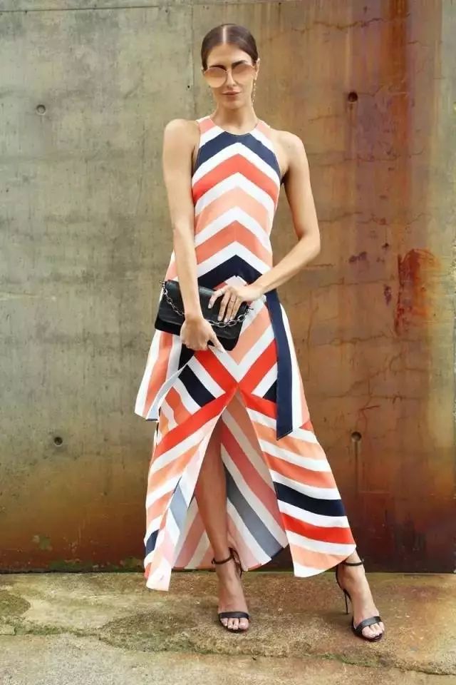 讓裙子的設計造型更有層次感,開叉中露出纖纖細腿,虛虛實實相結合顯腿細。