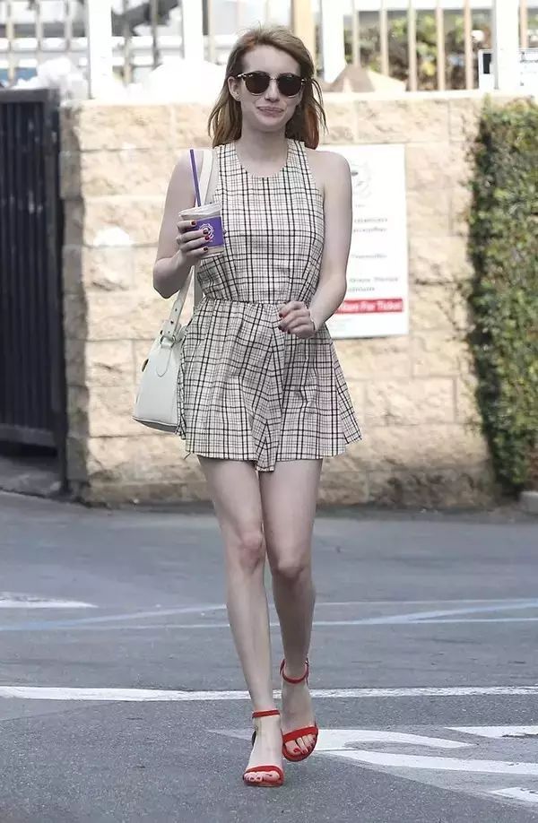 身材嬌小的Emma Roberts穿的是粗跟款。