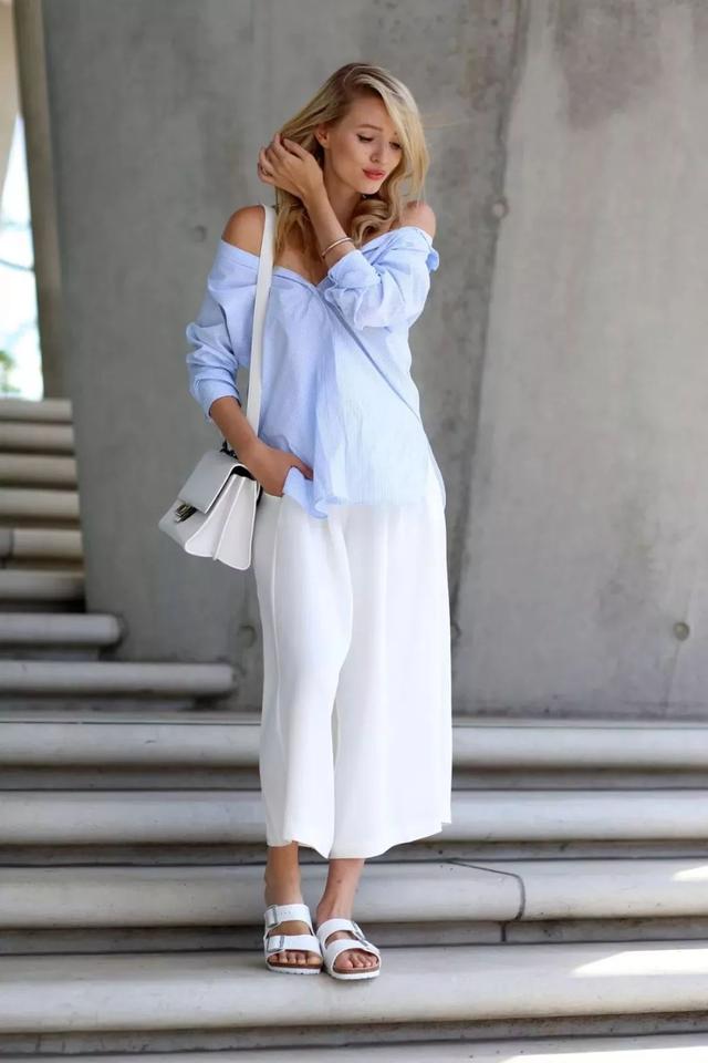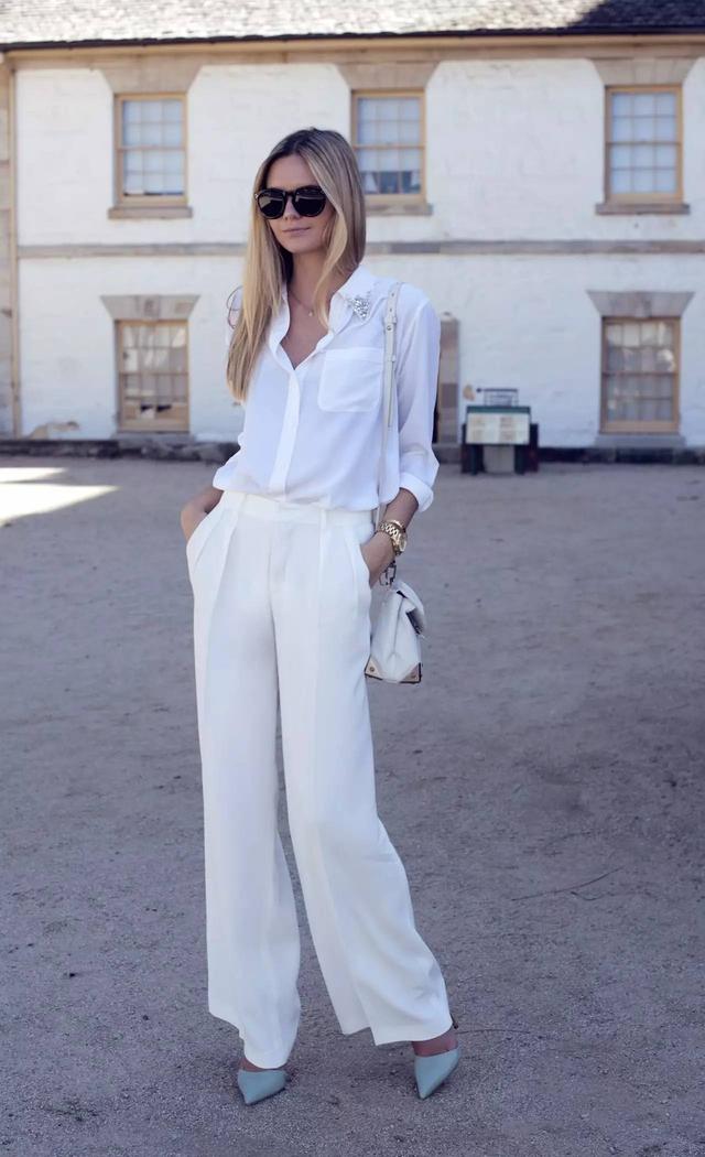 所以夏天的一條白色闊腿褲正當中,無論麻料還是雪紡材質的,在夏天都是很好的選擇!