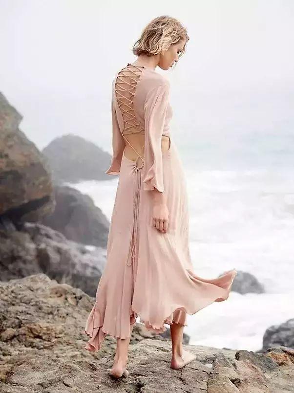 綢帶款的露背連衣裙非常有睡衣的氣質,但是正是這種睡衣款,才是姑娘們所追求的最高時尚。