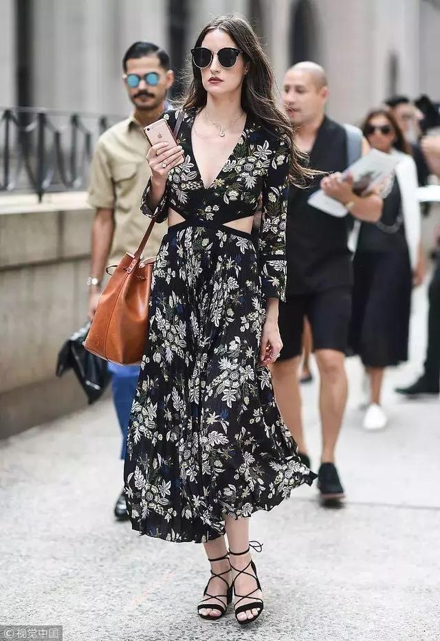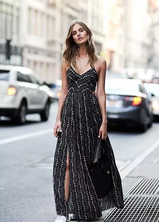 妹子還可以選擇比較知性溫婉的長吊帶裙,