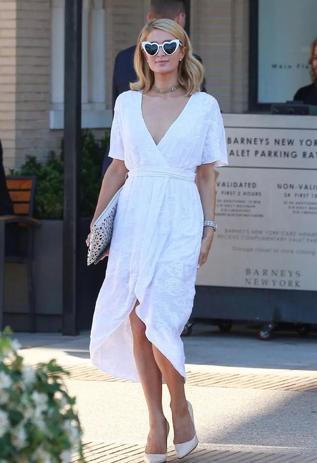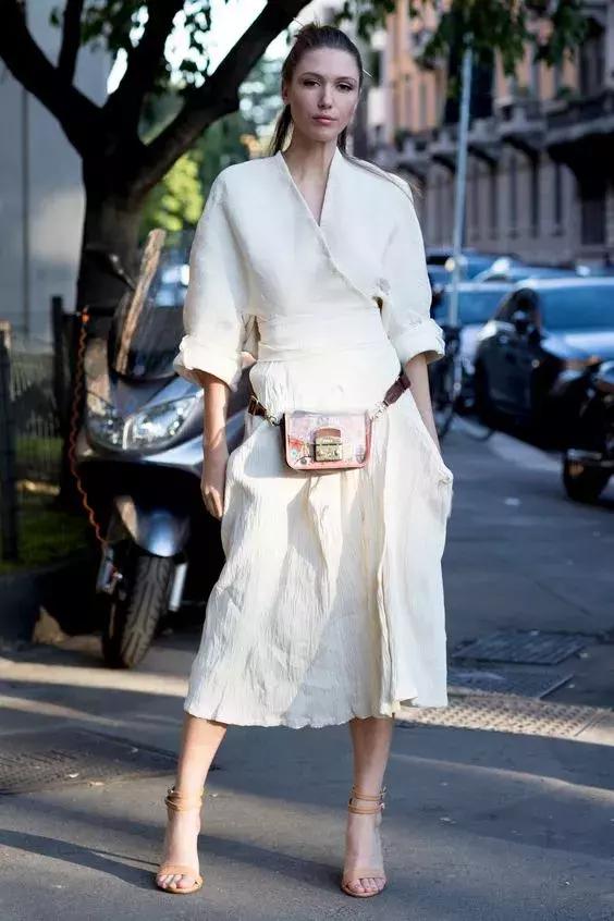 在小白裙中註入顯瘦的V領和收腰設計,就可以更好地修飾身材,