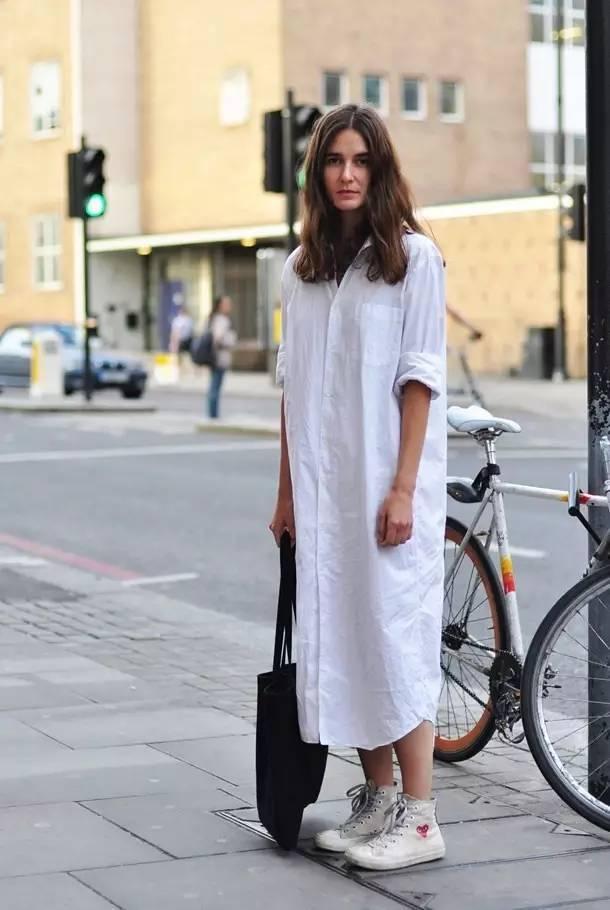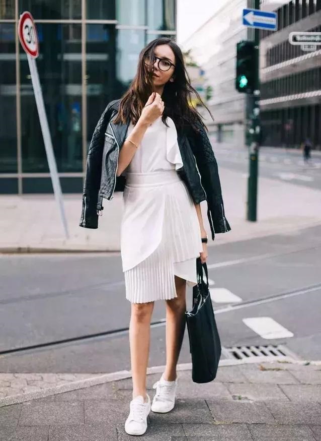 用小白裙混搭硬朗風格的單品碰撞出反差感,會更時髦,例如運動鞋。