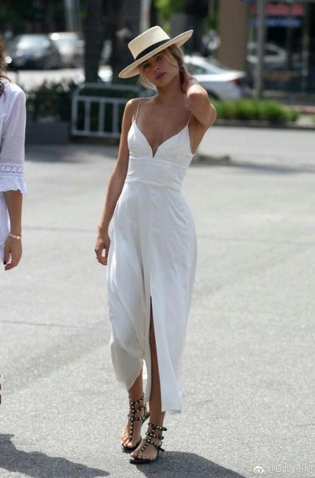 細吊帶的小白裙會讓整體看著更加精緻優雅。