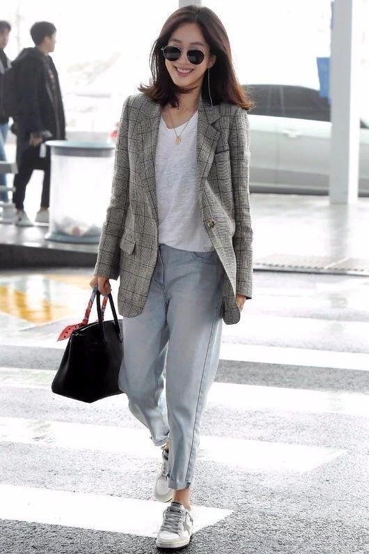 在南韓女藝人中,鄭秀妍絕對算一個西裝殺手,格紋搭配黑色內襯就高級感十足。