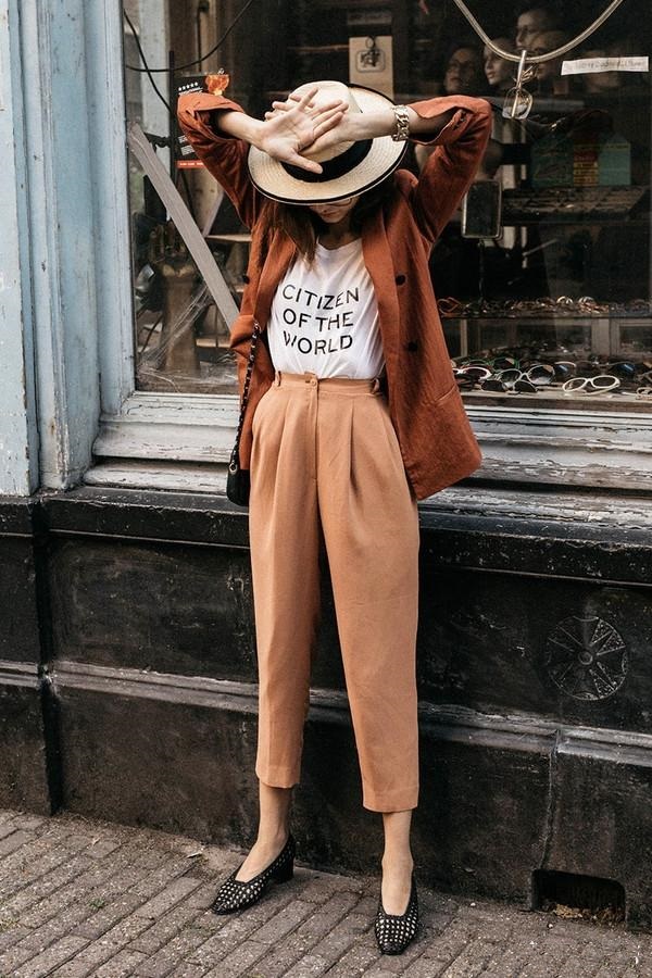 純色西裝搭配簡約的搭配單品,就可以穿出高級的時髦感。