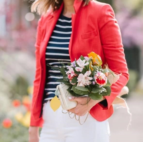 而純色西裝有時也滿足不了女性們的審美,在邊框出加入對比色,瞬間打破了沉悶。