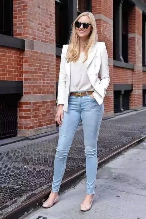 西服外套搭配牛仔褲,幾乎是時髦lady的標配,感覺它們就是為時髦的職業女性而生,在辦公室也能成為一道優雅的風景線。