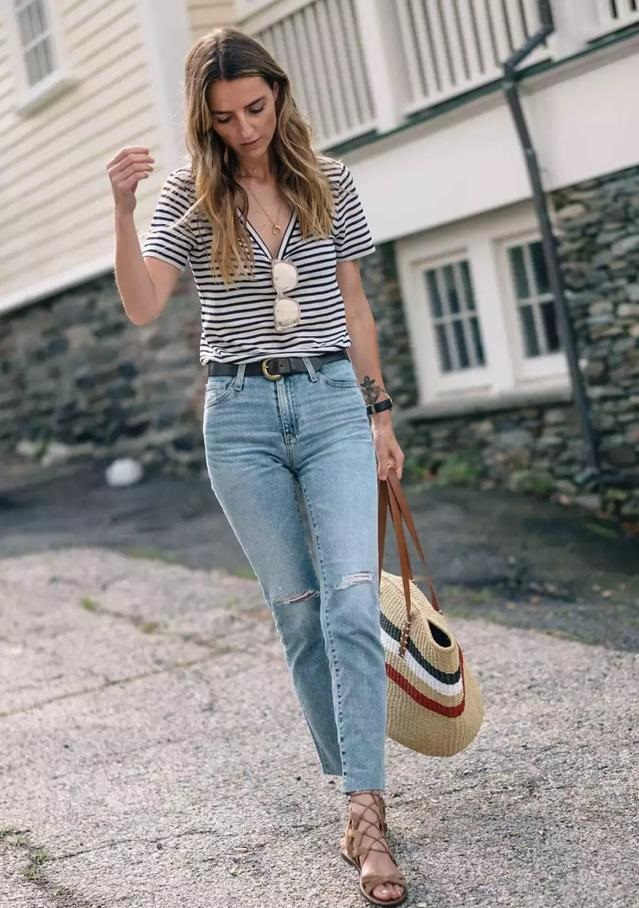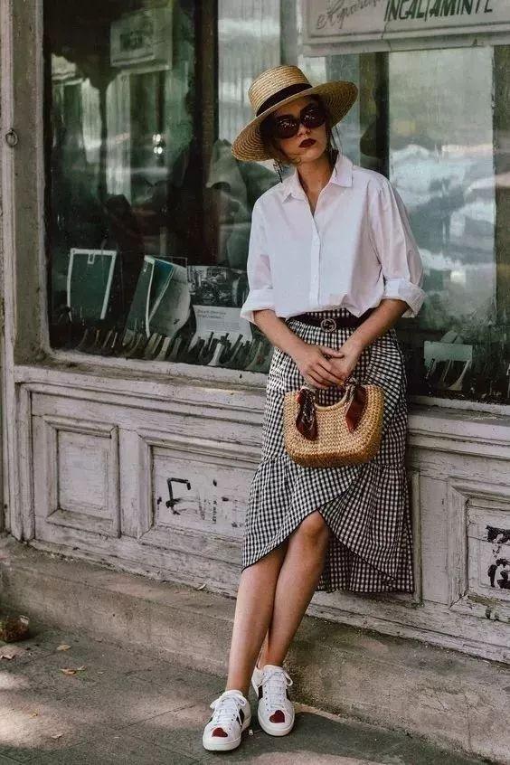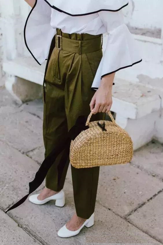 草編包+白色上衣幾乎成了夏季慵懶造型的標配,