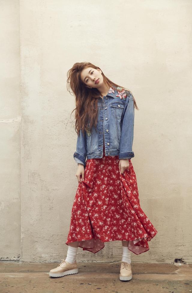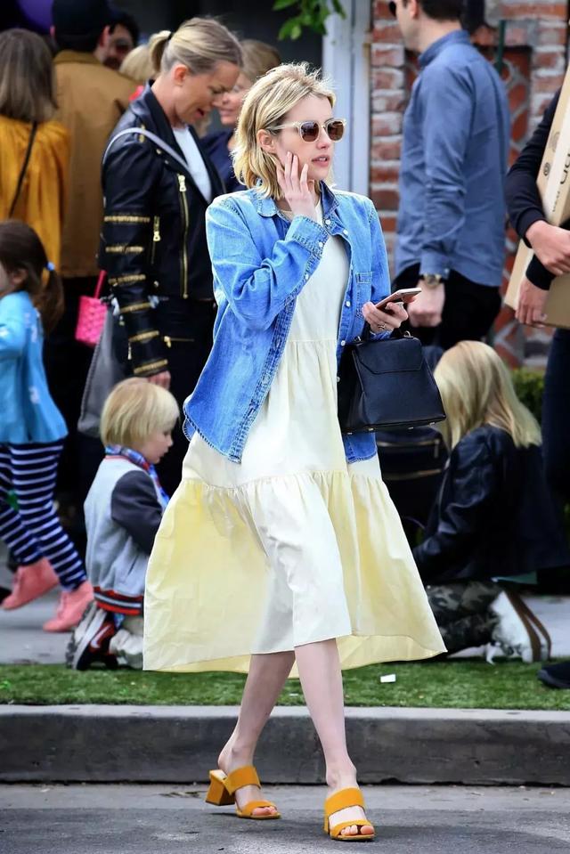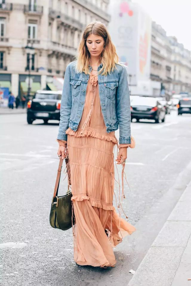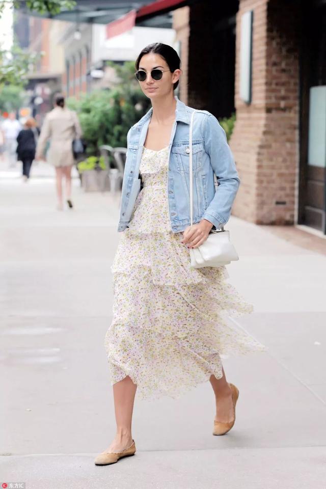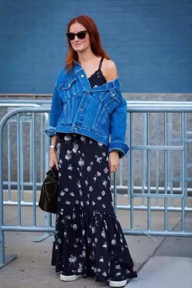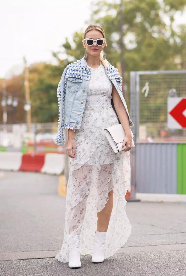 我想大部分的妹紙都喜歡長裙飄飄吧~不過這個時候牛仔外套要搭配短款的才會顯得腿長噢~
