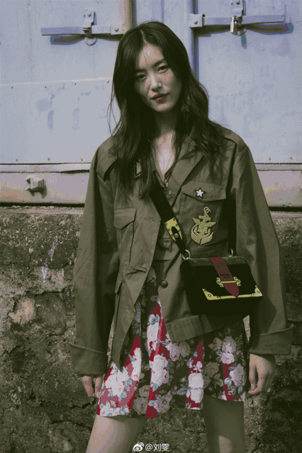軍綠色工裝外套自帶中性氣質,和裙子的搭配帥氣與柔情相融,甜美又硬朗。