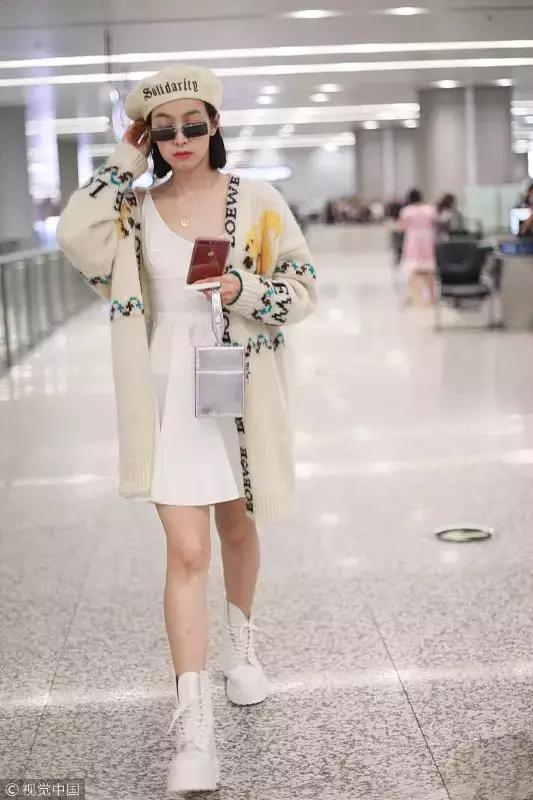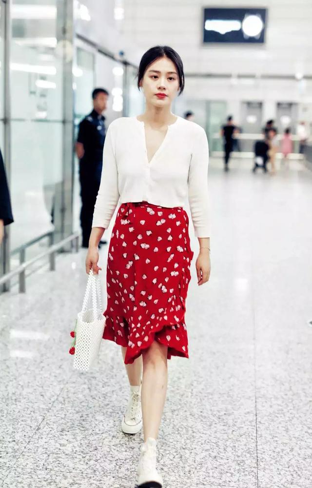 馬思純針織開衫+半身裙的搭配雖然日常,但非常驚艷,而且紅白色碰撞超顯膚白;