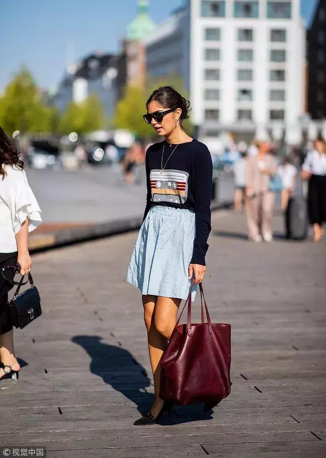 同樣適合小個子的還有膝上10公分的蓬蓬短裙,即使沒有刻意“高腰”,也無需擔心顯矮的問題,各種風格都能穿出。
