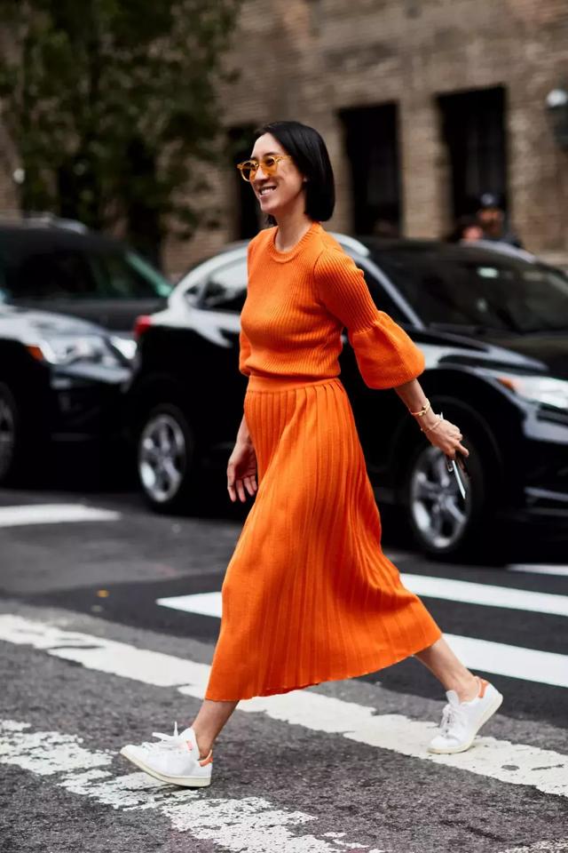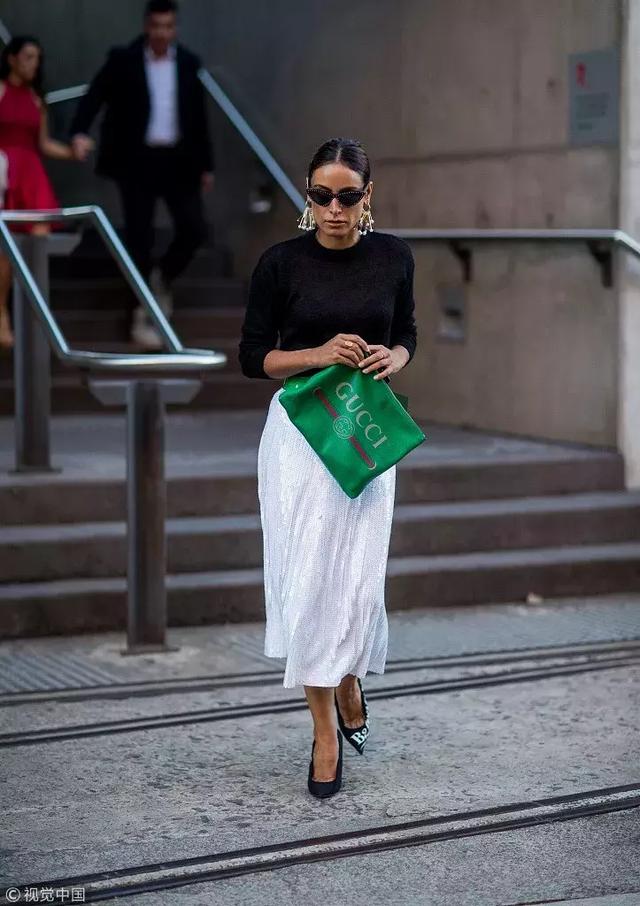 搭配不規則中長裙則是不過分的時髦,同色係依舊是彰顯高級感的法寶。