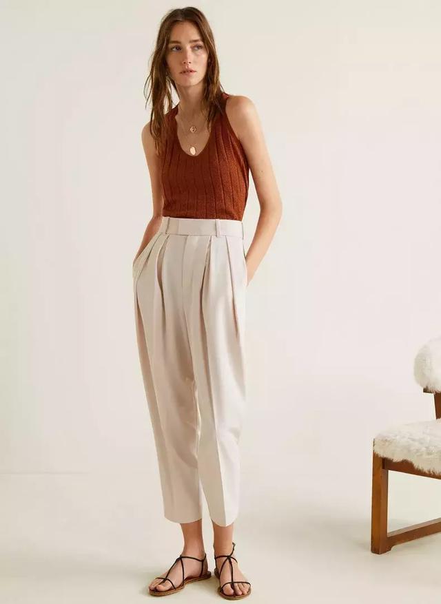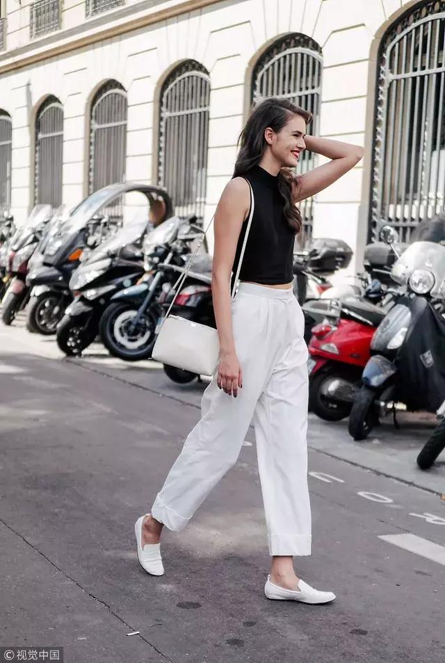 闊腿褲是百搭顯瘦的九分長度,能露出最細的腳踝部分,不管搭配平底鞋還是高跟鞋都好看。