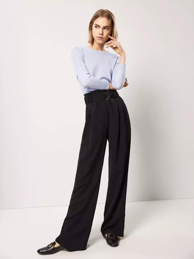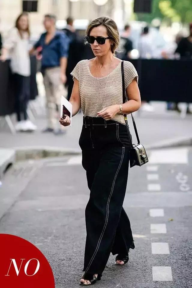 輕薄針織上衣+闊腿褲,也是想要“偷懶”還能穿出好衣品的組合,簡潔的黑白配也能讓人眼前一亮。