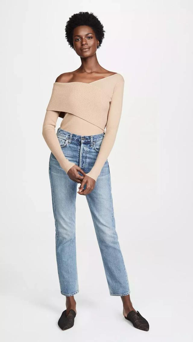 現在還有不少針織中袖衫做成柔和的泡泡袖設計,增添了造型感,重要的是還能修飾手臂。