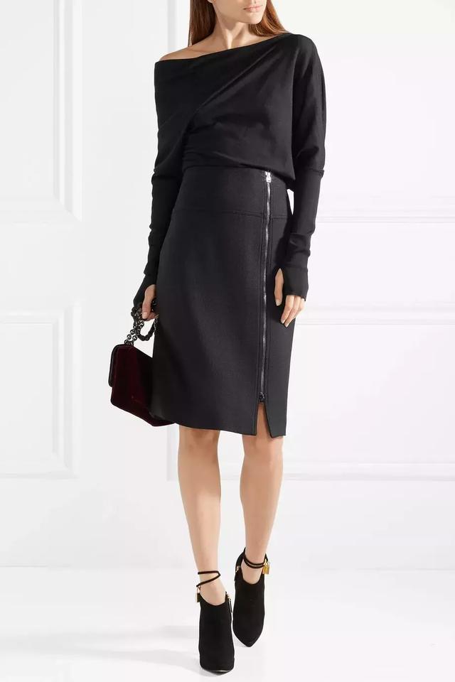 針織上衣與硬朗風的黑色皮裙其實也可以一起出現,氣質雖然相反,