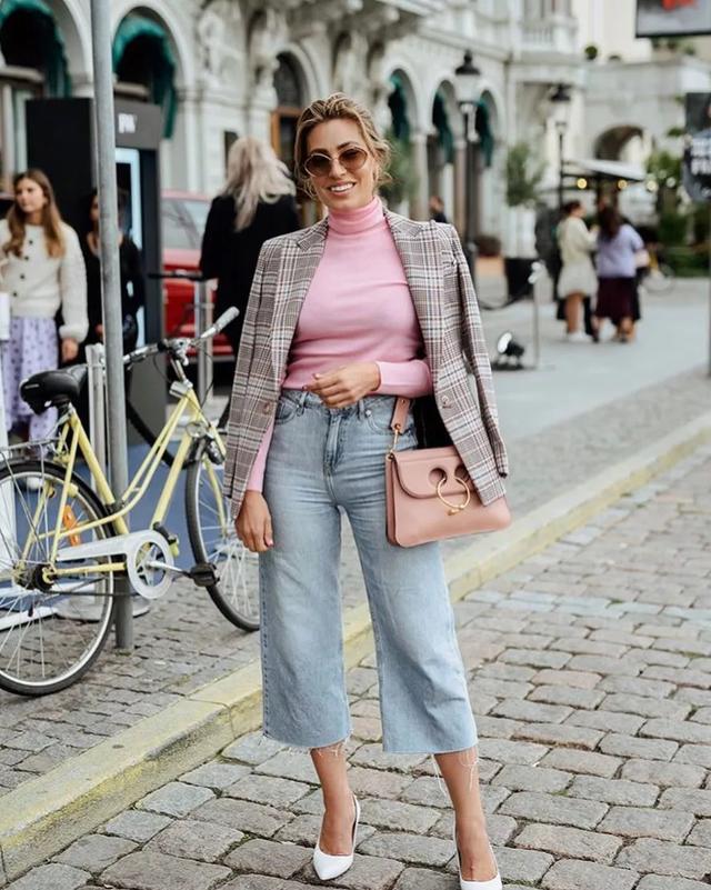 更冷的時候,內搭高領衫和牛仔褲,則更增加一份優雅和別緻。