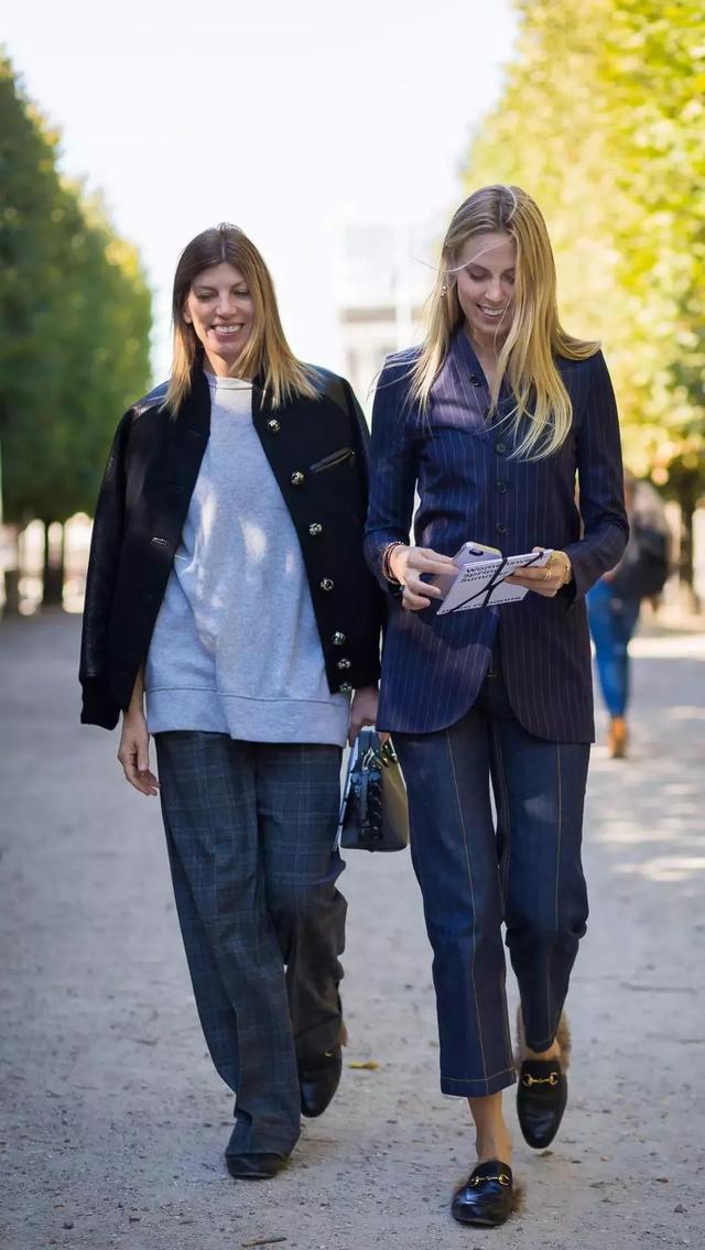 格紋西裝和條紋闊腿褲意外的相配好看!舒適的通勤風,每個上班族都值得擁有~