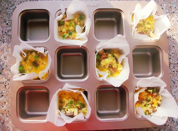 1、 食材根據自己冰箱裡的存貨可以進行調整,沒有太大的限制。紙杯一定要用烘焙專用紙杯,如果家裡沒有,可以像我一樣用烘焙紙DIY一個簡易的紙杯出來,更加環保。
