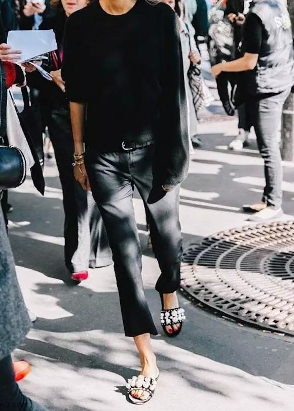 就連拖鞋也能玩出花樣。永遠少女的MiuMiu的珍珠鞋結合了運動拖鞋,超酷。