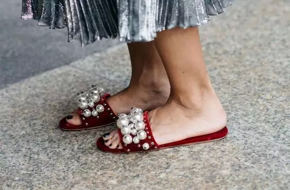 有人可能觉得“不行不行,镶钻的鞋穿起来实在是太浮夸了,或者“平时没什么机会穿,而且也不太好搭配”,那么建议你看看超百搭的珍珠鞋。平时普通的鞋款就点缀着几颗圆润的珍珠,瞬间鞋子的质感得到了提升。