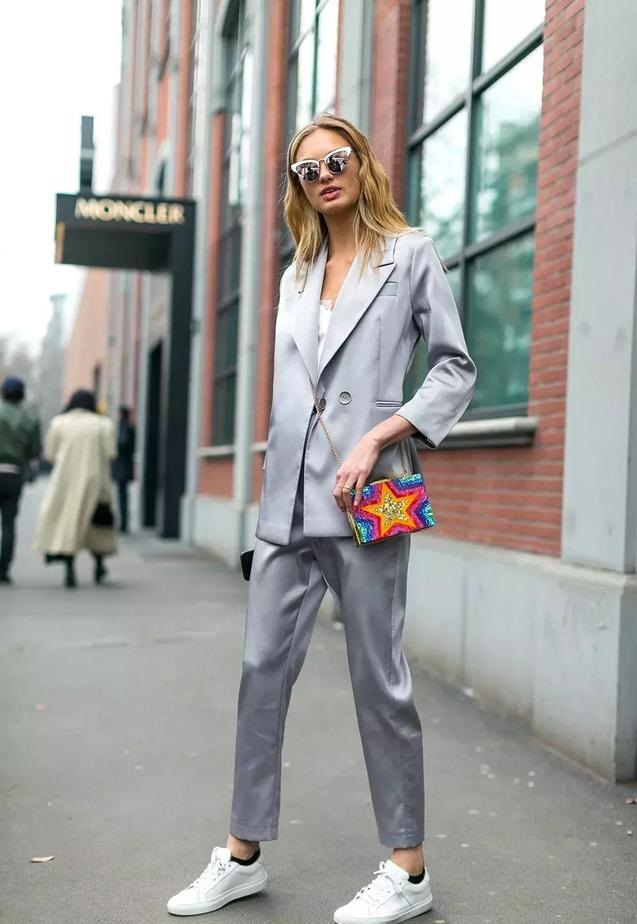 西裝外套是吊帶的標配,用它高級的性感平衡西裝的帥氣,時髦的OL風~