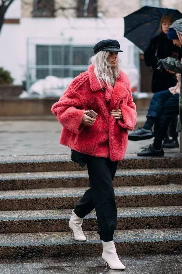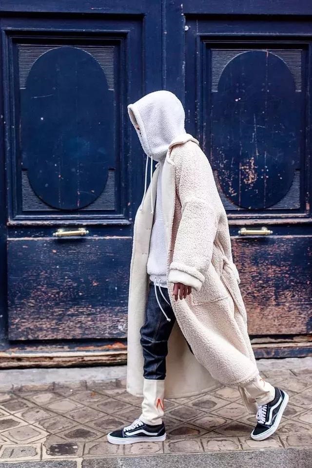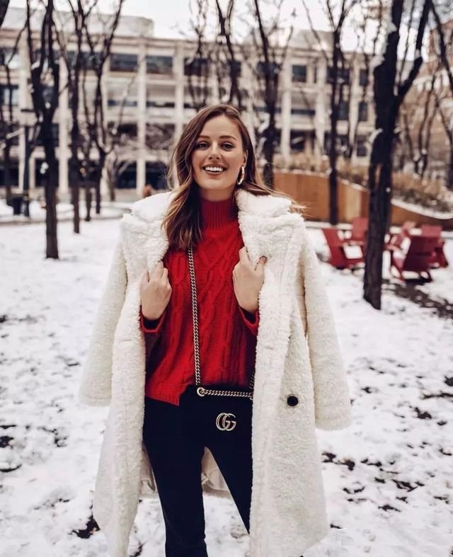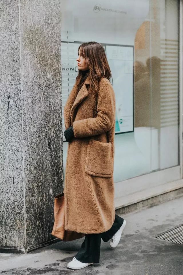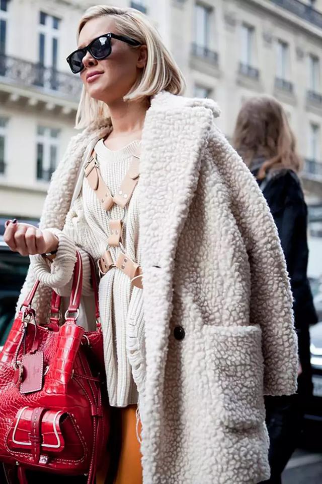 長款的泰迪胸外套可以穿緊身牛仔褲或者裙裝搭配!