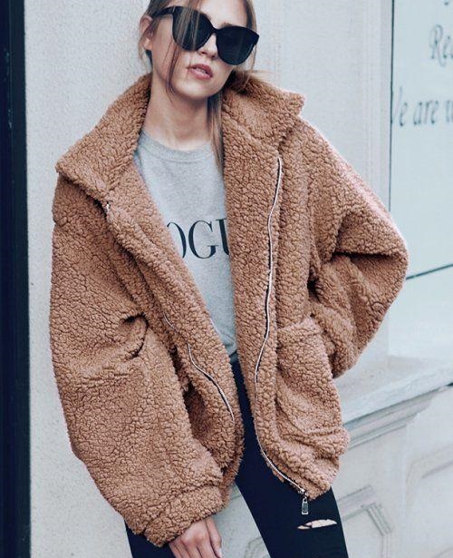它既可稱作泰迪熊外套,也可叫作仿毛皮夾克!好穿又保暖,完全可以替代大衣,甚至羽絨服!