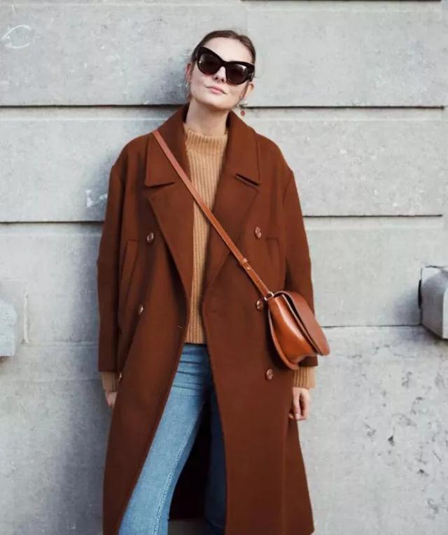焦糖色大衣焦糖色的大衣,比黑白灰更有色彩感,又比駝色更穩更襯膚色,自帶高級感,簡單的穿著就優雅大氣。