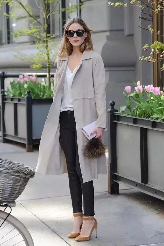 具體到綠色風衣的搭配,葉子個人的建議是要有白色等淺顯一點的顏色上身,不管作為內搭還是腳下的鞋履都好,它都能為瀟灑的風衣呼應出些許明亮的視覺效果來,十足新穎潮流,年輕減齡的作用一併兼具到。