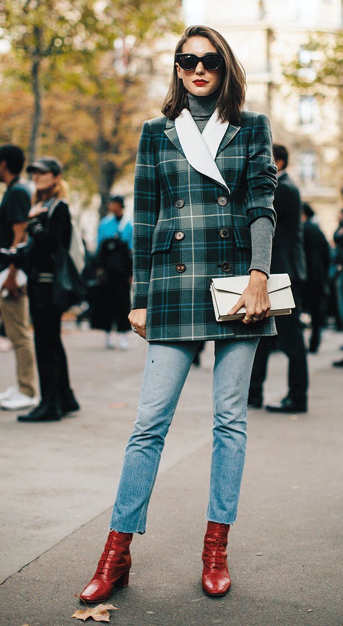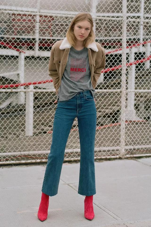 藍色牛仔褲、白色襯衫或厚重的高領毛衣,紅色靴子和很酷的外套,將是冬季裡最溫暖的風景線。