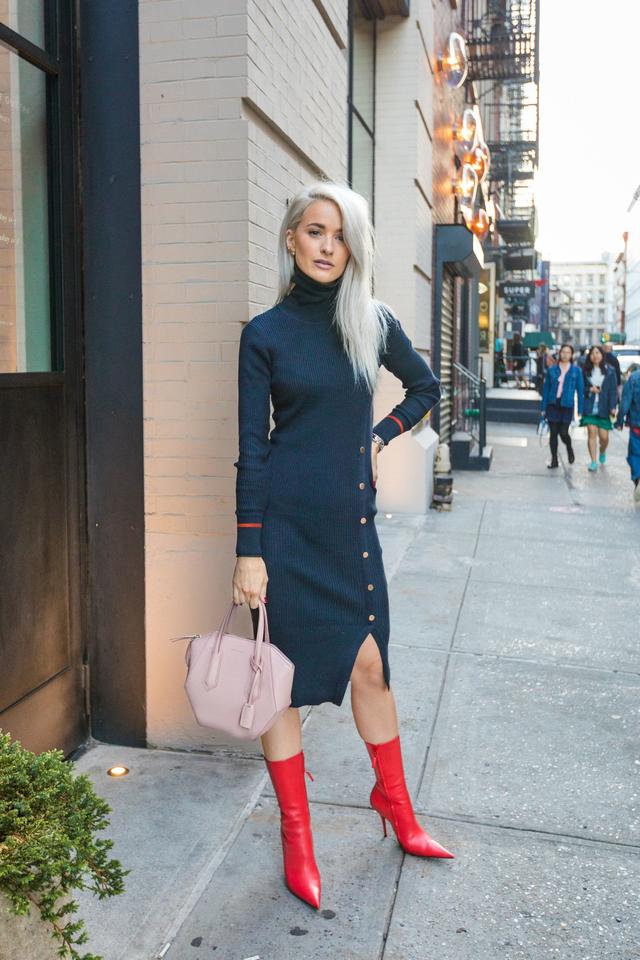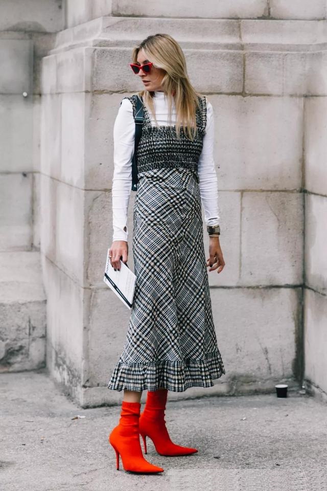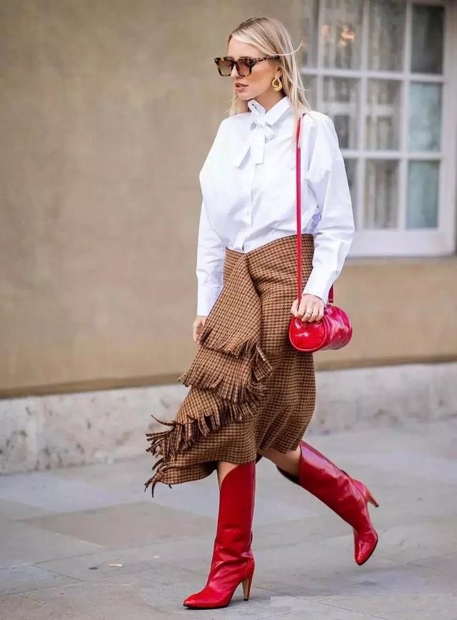 靴子的顏色可以很調皮,比如紅色,感覺相當得體。