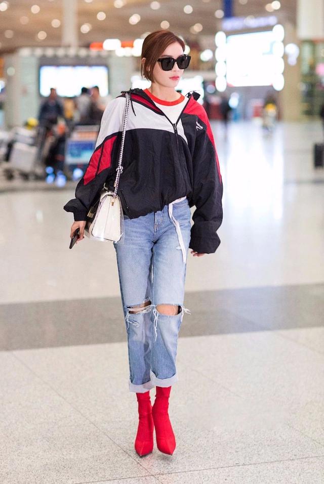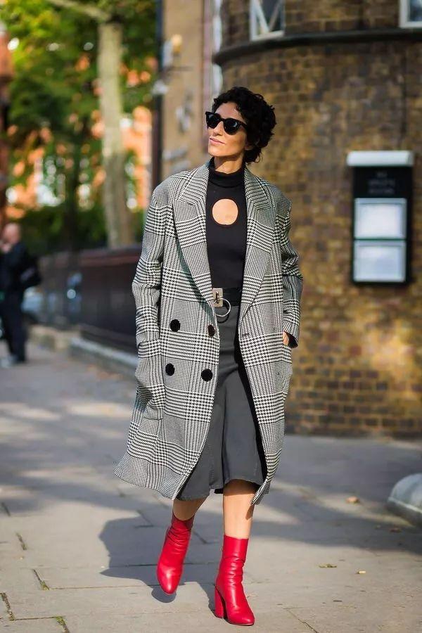 搭配紅色短靴更顯腿長,南方的天氣還不算太冷,絕對可以這樣穿呢。