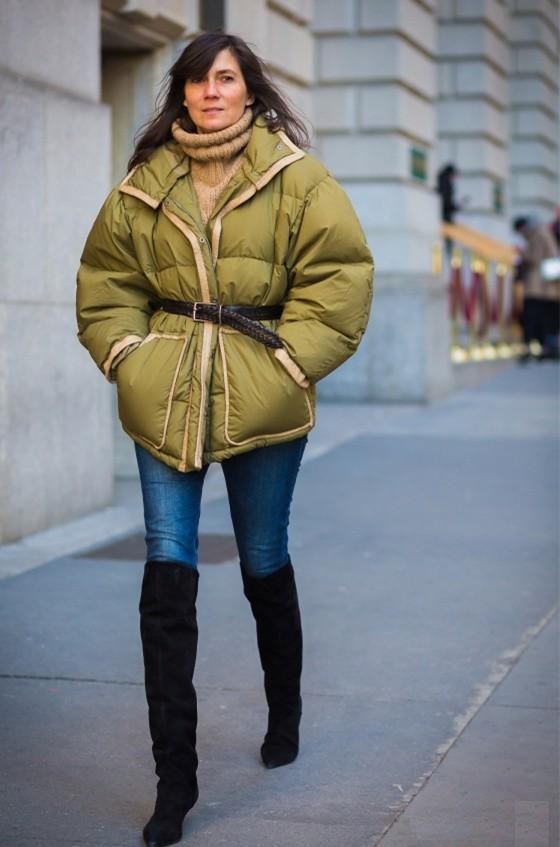 和連帽款麵包服類似,半高領設計的羽絨服,通過衣領在肩膀處的堆積,會在視覺上起到很好的比例修飾作用。