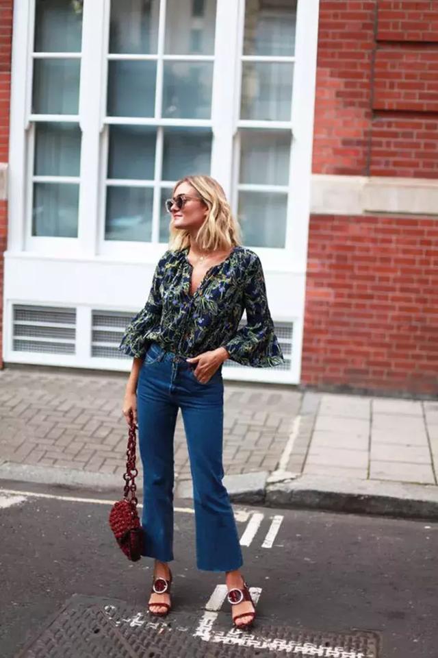 微喇褲能很好的修飾了小腿,九分的設計,露出女性的細腳踝,顯瘦又有些小性感。