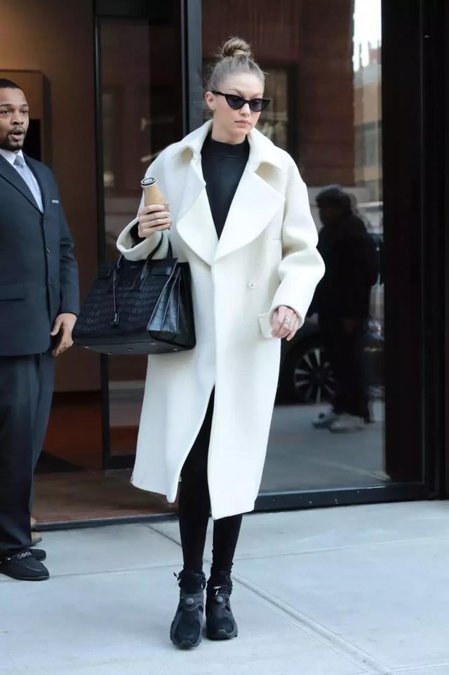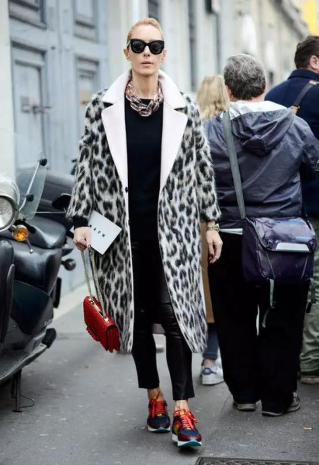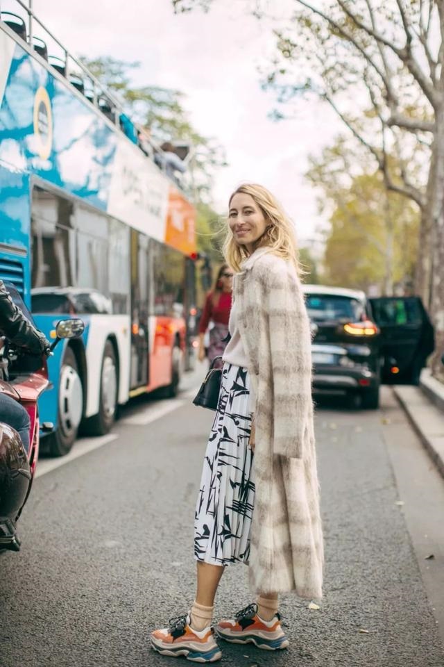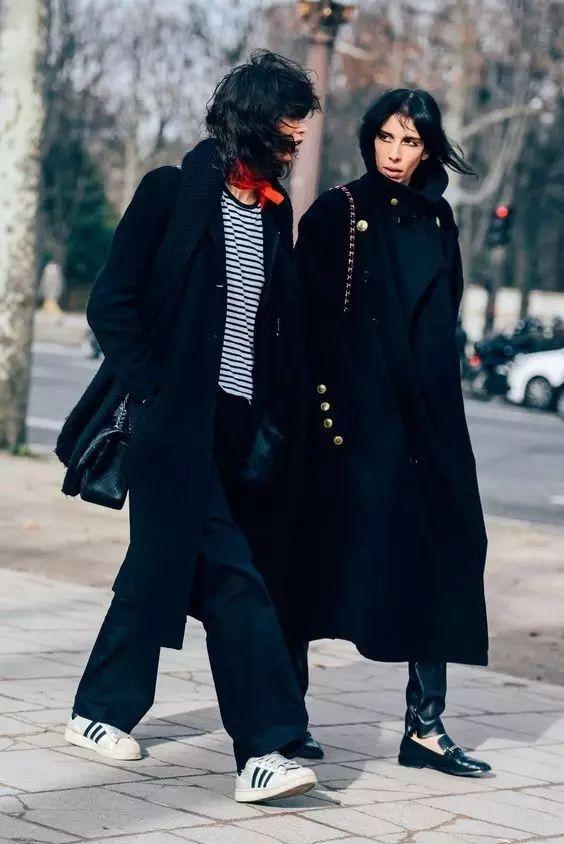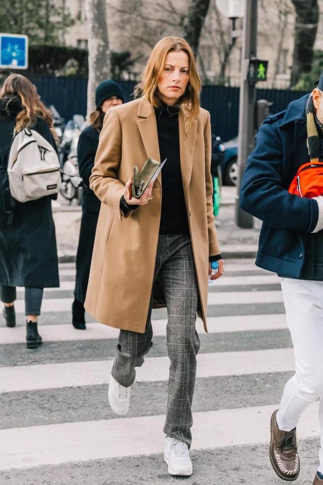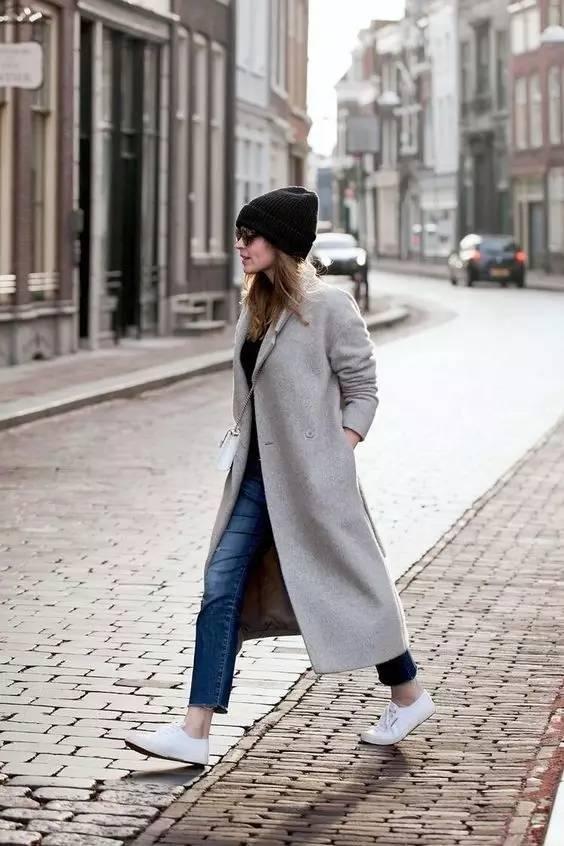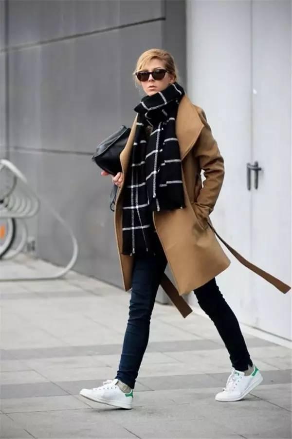 小白鞋搭配大衣