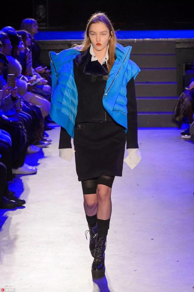 就算穿的是簡簡單單的黑色連身裙,只要套上一件亮色超短羽絨背心,馬上整個人就看上去拔高了。