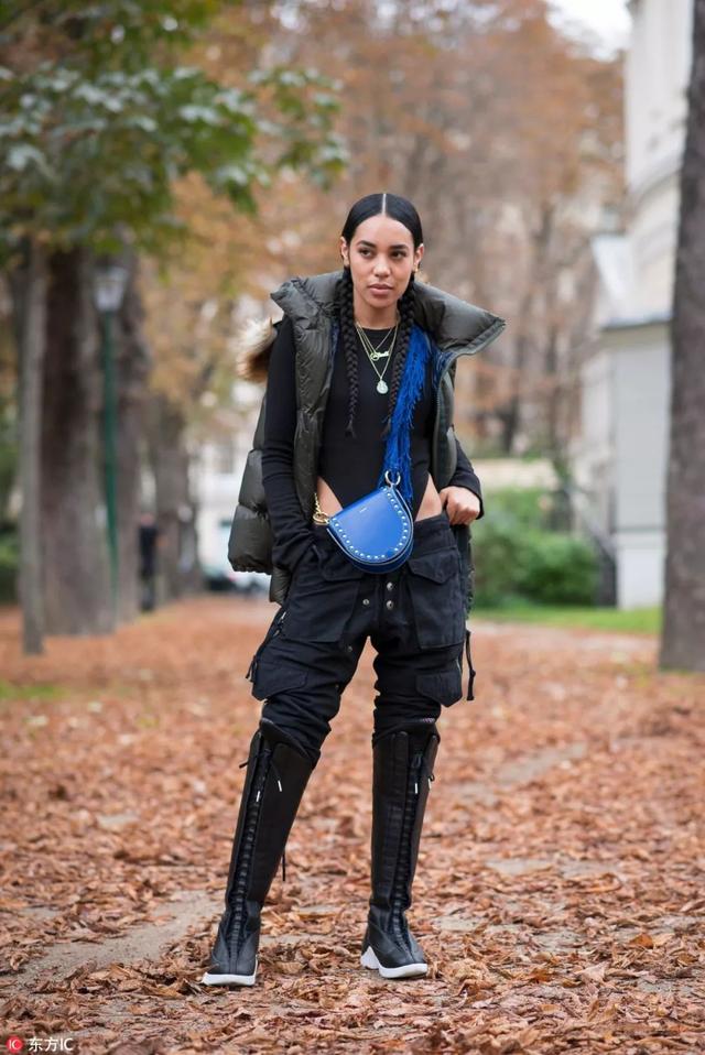 平時穿的時候可以像這樣,搭一雙長筒靴,有了女戰士的帥氣感,看上去也更加有氣場一些。