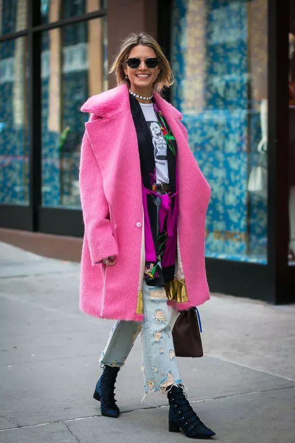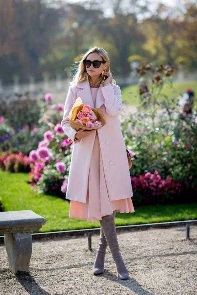 如果打算入手一件粉色大衣,選對顏色和款式也很重要: